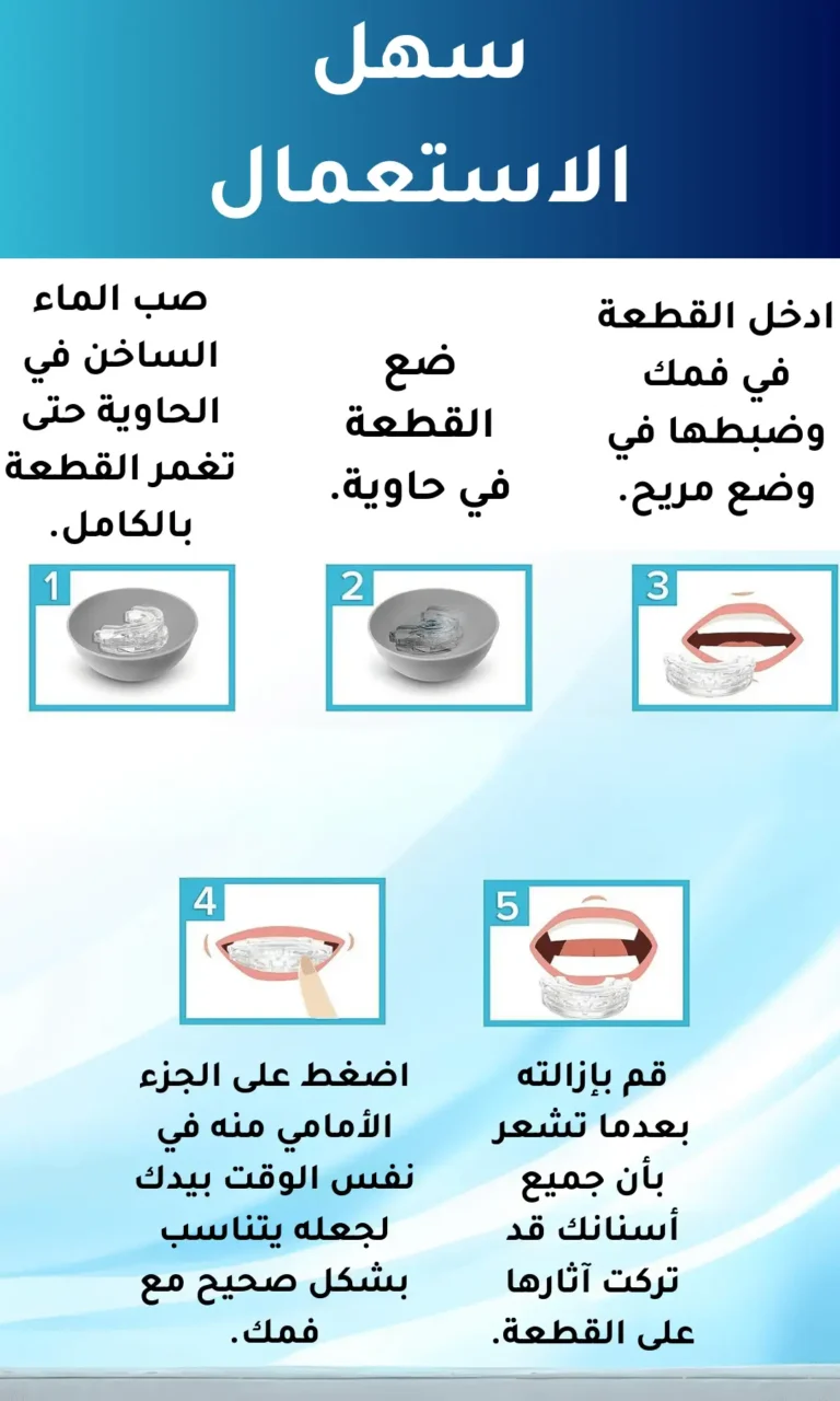 الدقة // أوتوماتيكي للعضة، ما عليك سوى غليها في الماء ثم قضمها على قطعة الفم لتشكيل قطعة فم مريحة مخصصة لدغتك.