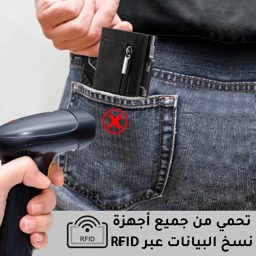 حماية كاملة ضد الماسحات بفضل تقنية RFID المتطورة، مما يضمن أمان بياناتك الشخصية والمالية.